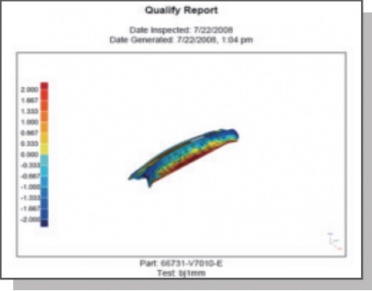 使用3D扫描技术进行三维检测是一种全尺寸检测技术,其基本方法是:先对待检测部件进行局部或整体3D扫描,把得到的3D点云与其3D数模进行比对,生产颜色误差编码图和直观的检测报告。