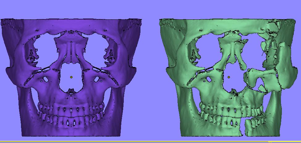 需要将病人另一侧比较好的脸,做对称面,以便规划手术,恢复患者外观。